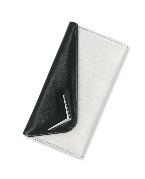 Envelope clutch made from glitter PVC with Iconic Liquorbrand Chevron logo.