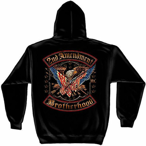 This hoodie has the words "2nd Amendment Brotherhood" and a picture of two American flags and a bald eagle.