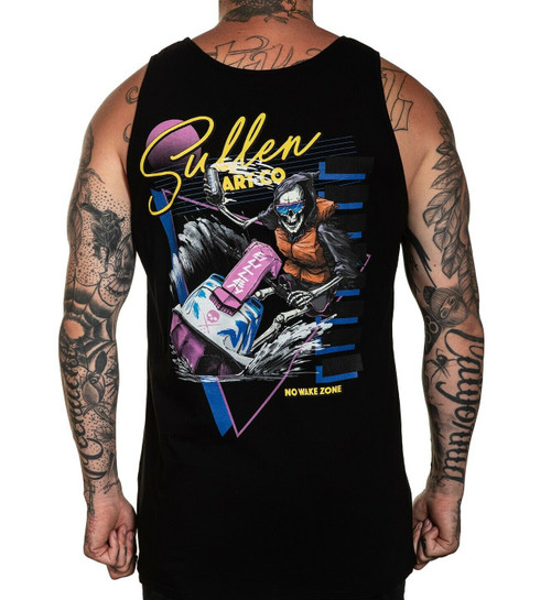 FEATURES: Sleeveless Black Tank Top. Tag less for maximum comfort. Set-in rib collar with shoulder-to-shoulder taping. Preshrunk to minimize shrinkage. This soft body tank top with printed artwork on front and back between shoulder blades features the timeless Sullen circle badge.