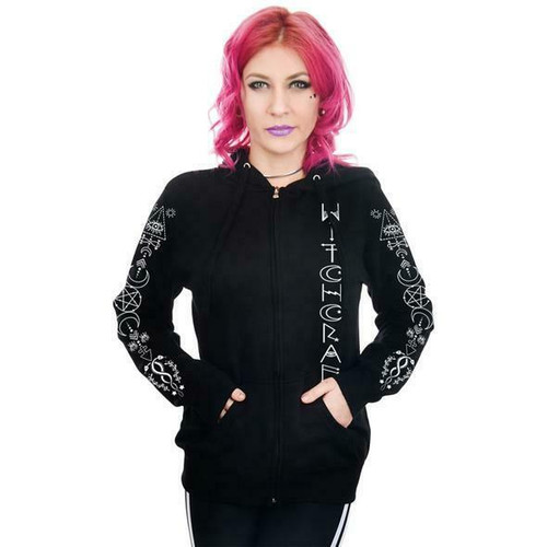 Giving off all the witchy vibes with occult symbols & witchy text on the Witchcraft hoodie.